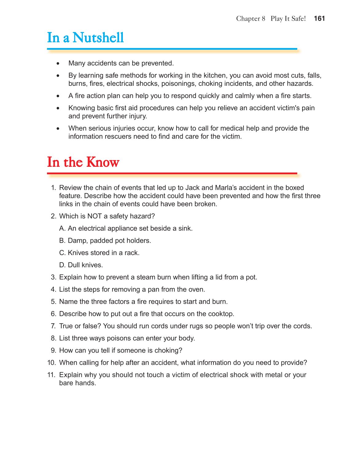 • By learning safe methods for working in the kitchen, you can avoid most cuts, falls,