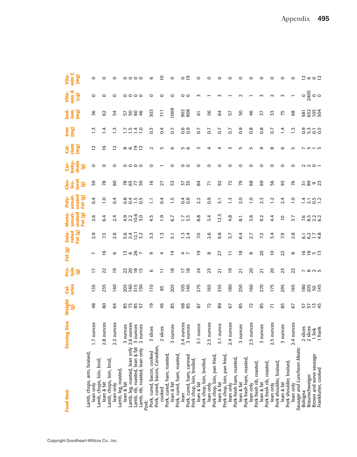 Braunschweiger 2 slices 57 205 8 18 6.2 8.5 2.1 89 2 5 5.3 652 2405 6