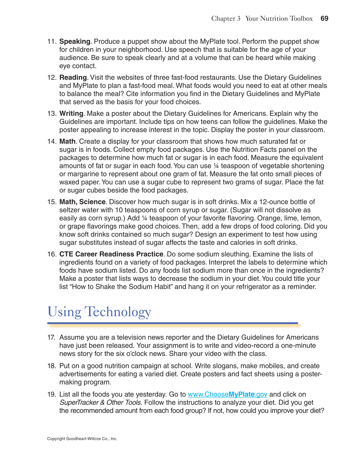 13. Writing. Make a poster about the Dietary Guidelines for Americans. Explain why the