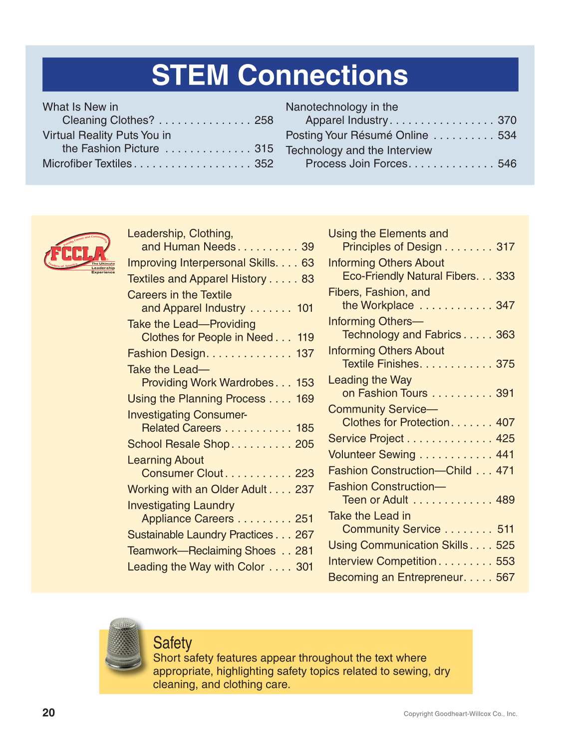appropriate, highlighting safety topics related to sewing, dry