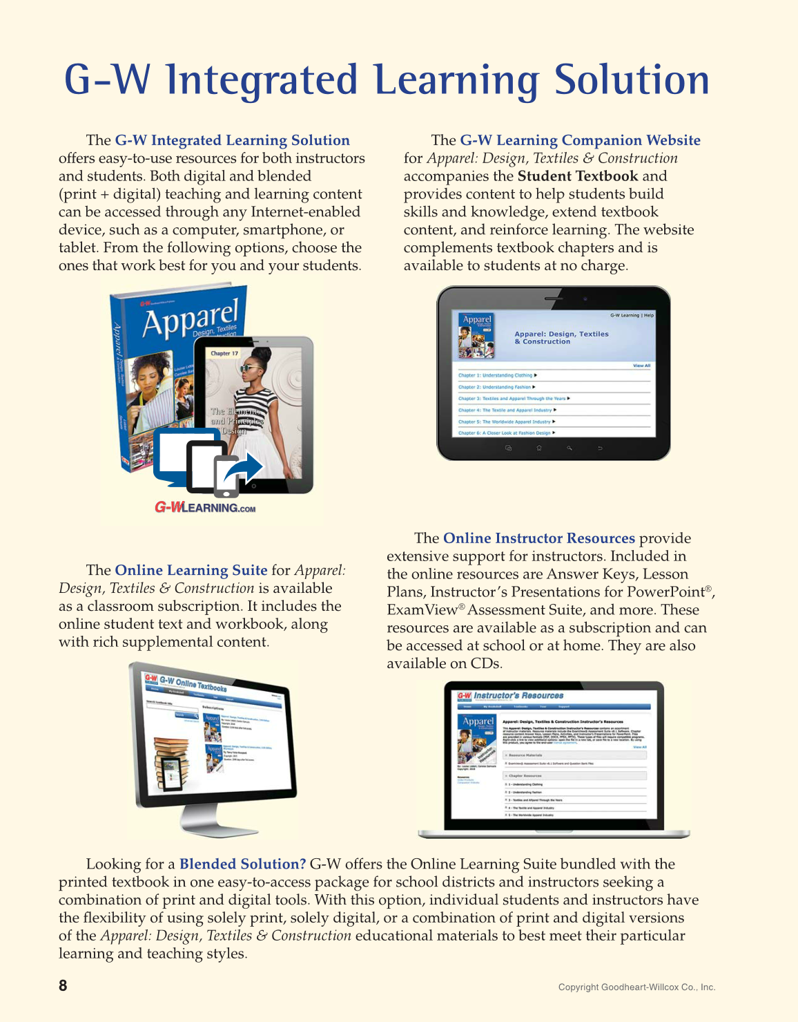 of the Apparel: Design, Textiles & Construction educational materials to best meet their particular
