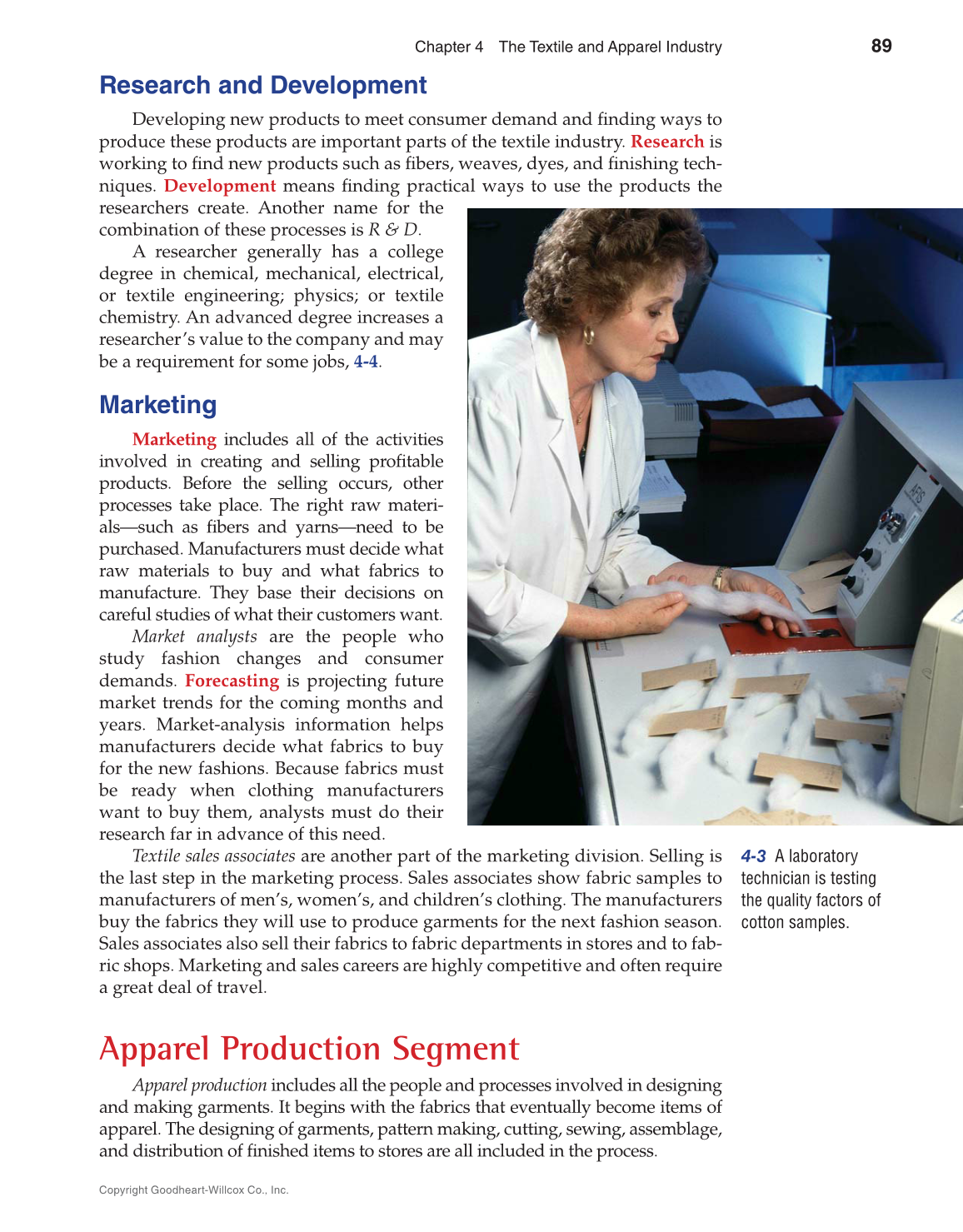 working to fi nd new products such as fi bers, weaves, dyes, and fi nishing tech-