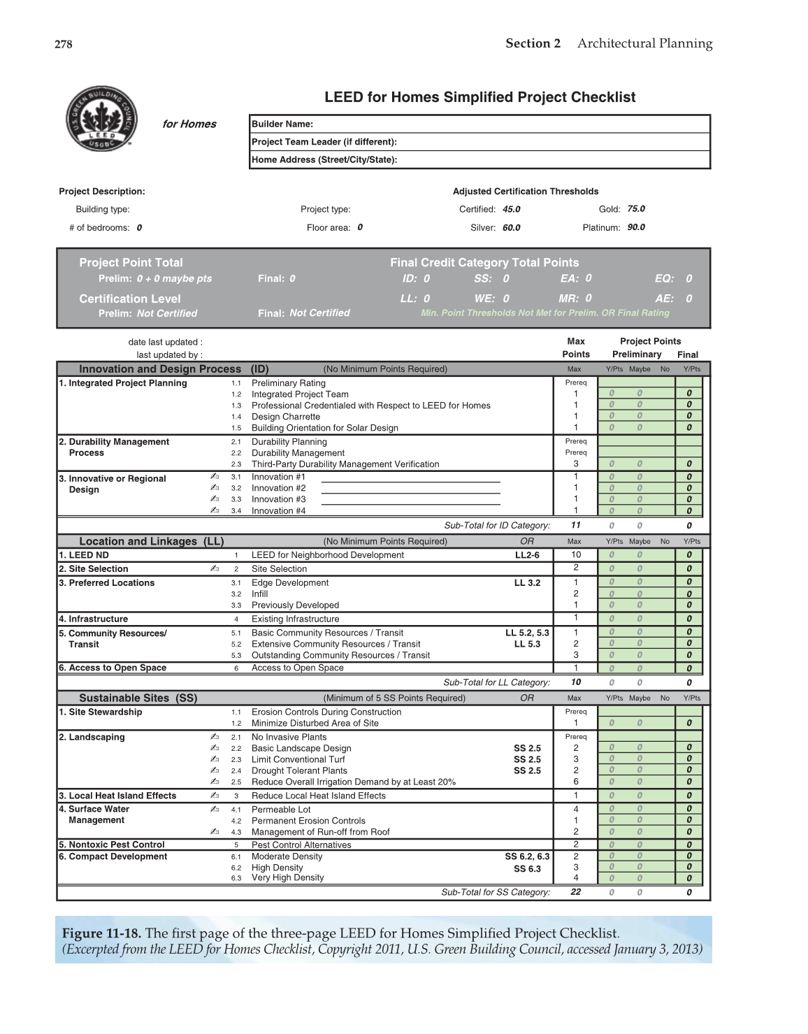 Figure 11-18. The fi rst page of the three-page LEED for Homes Simplifi ed Project Checklist.