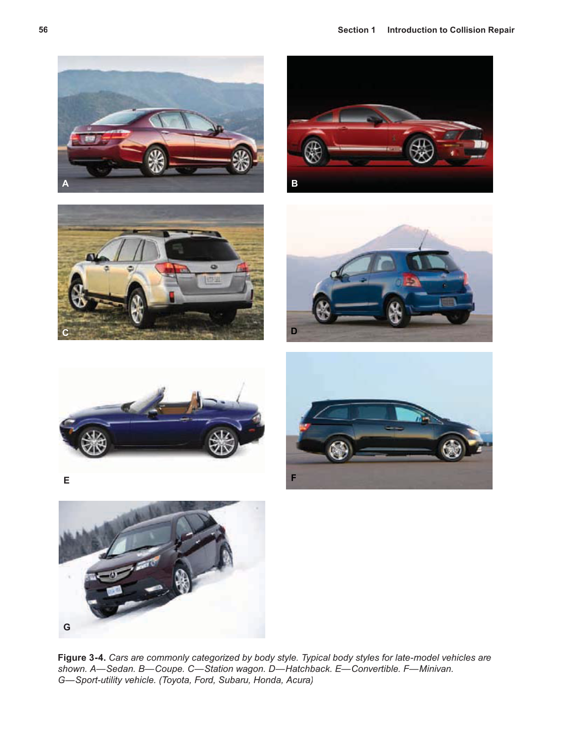 Figure 3-4. Cars are commonly categorized by body style. Typical body styles for late-model vehicles are
