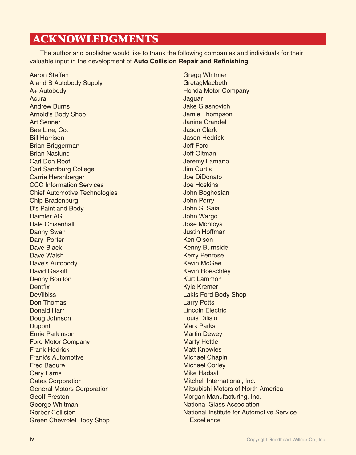 valuable input in the development of Auto Collision Repair and Refinishing.