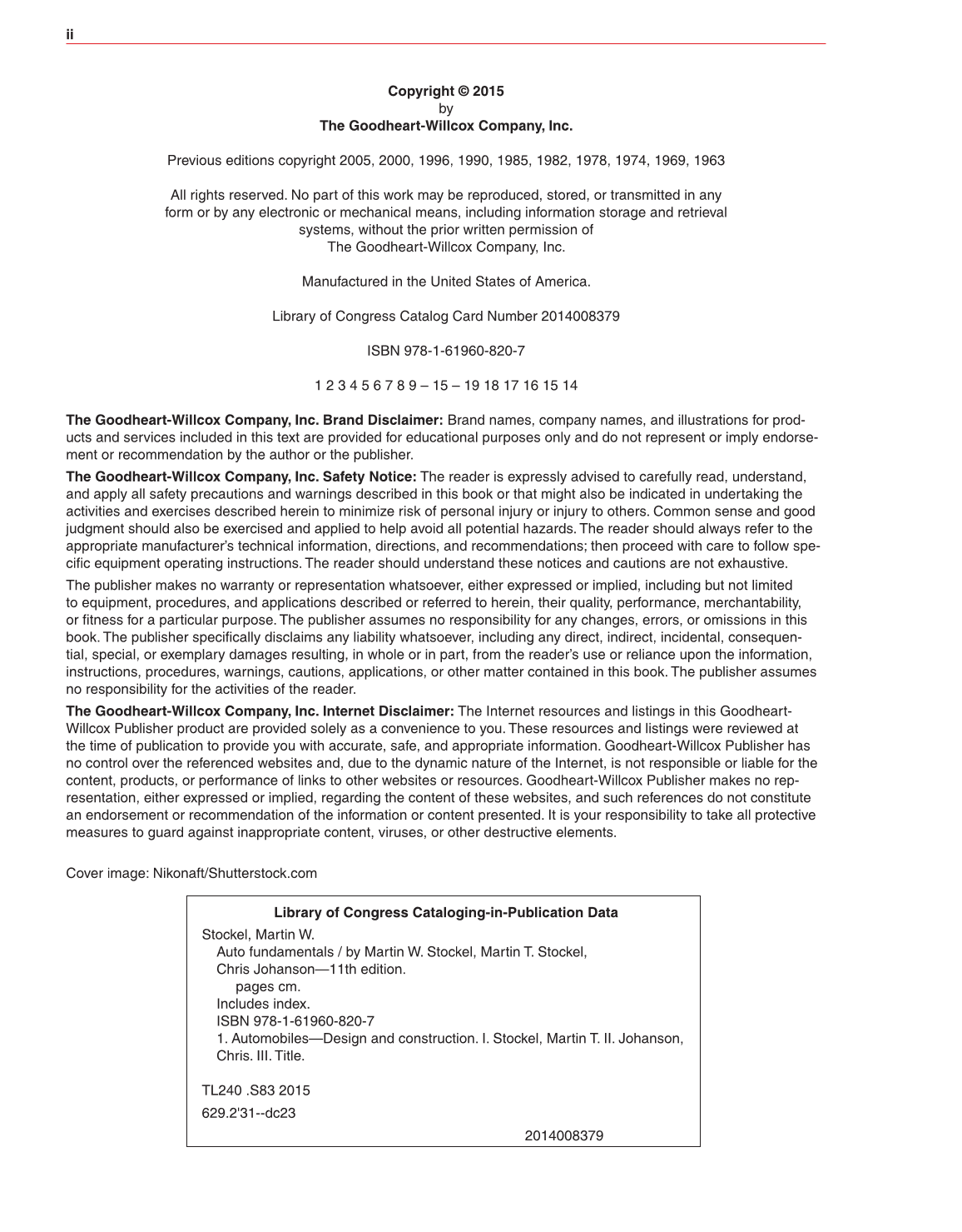 The Goodheart-Willcox Company, Inc. Safety Notice: The reader is expressly advised to carefully read, understand,
