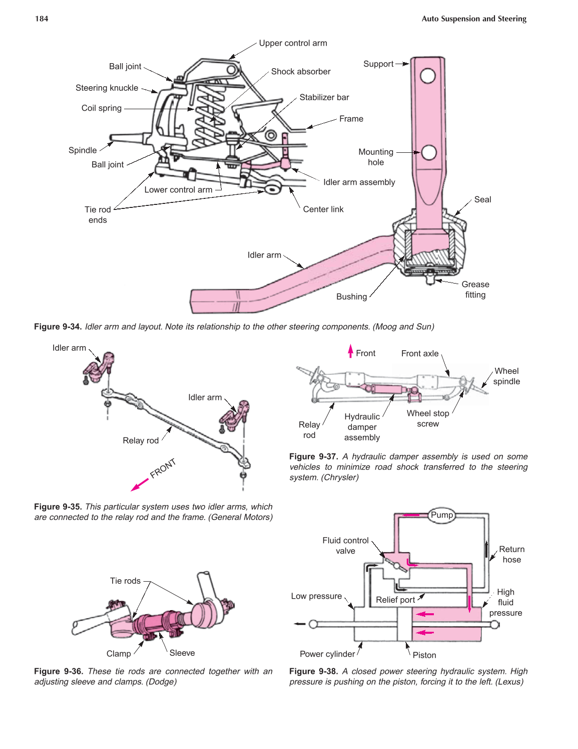 Figure 9-34. Idler arm and layout. Note its relationship to the other steering components. (Moog and Sun)