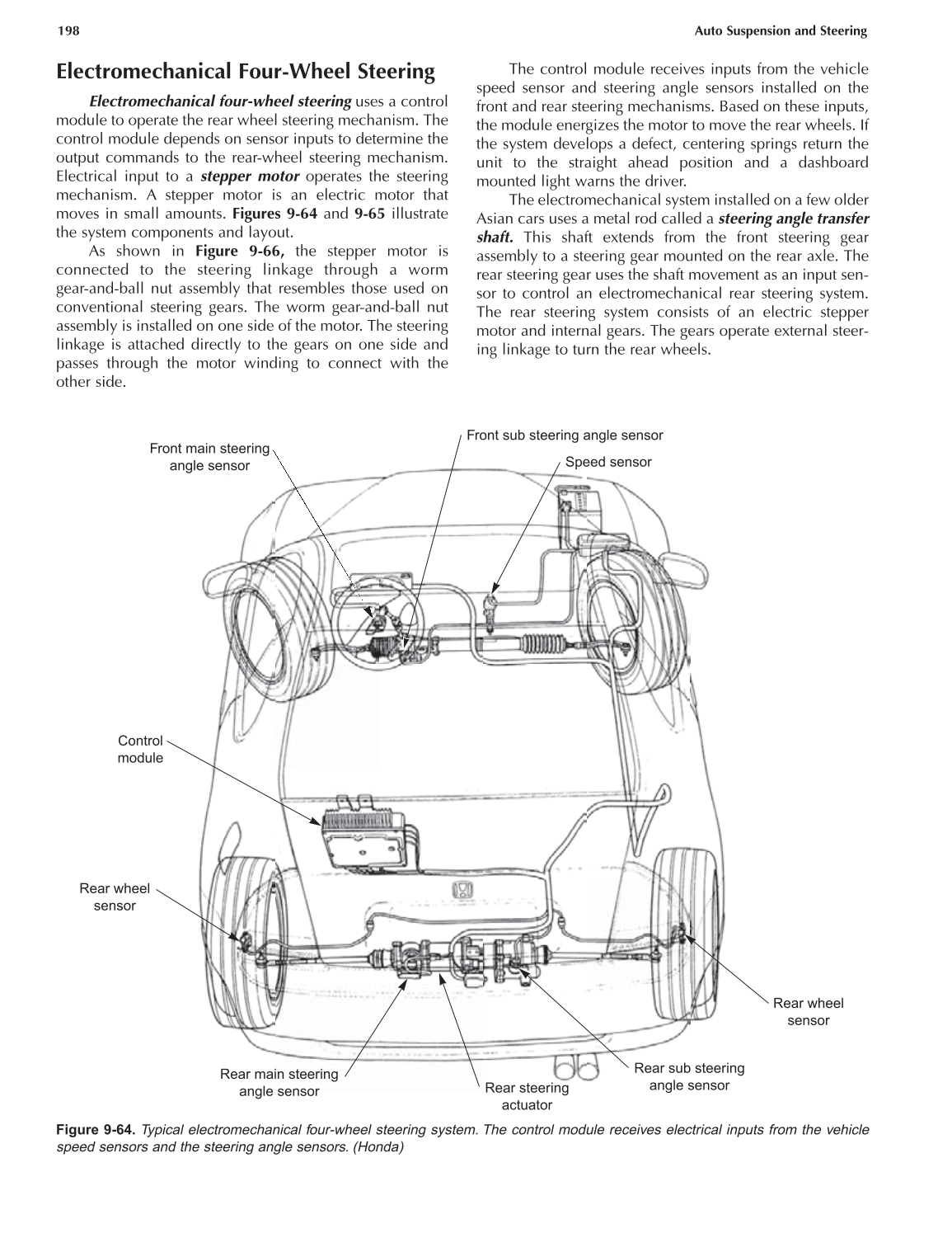 Figure 9-64. Typical electromechanical four-wheel steering system. The control module receives electrical inputs from the vehicle