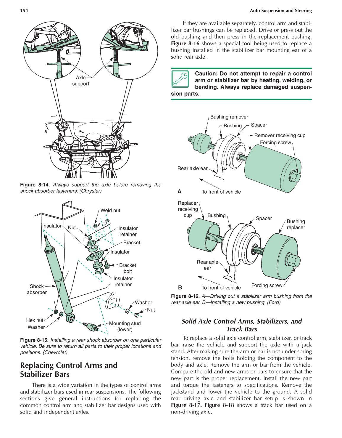 Figure 8-16. A—Driving out a stabilizer arm bushing from the