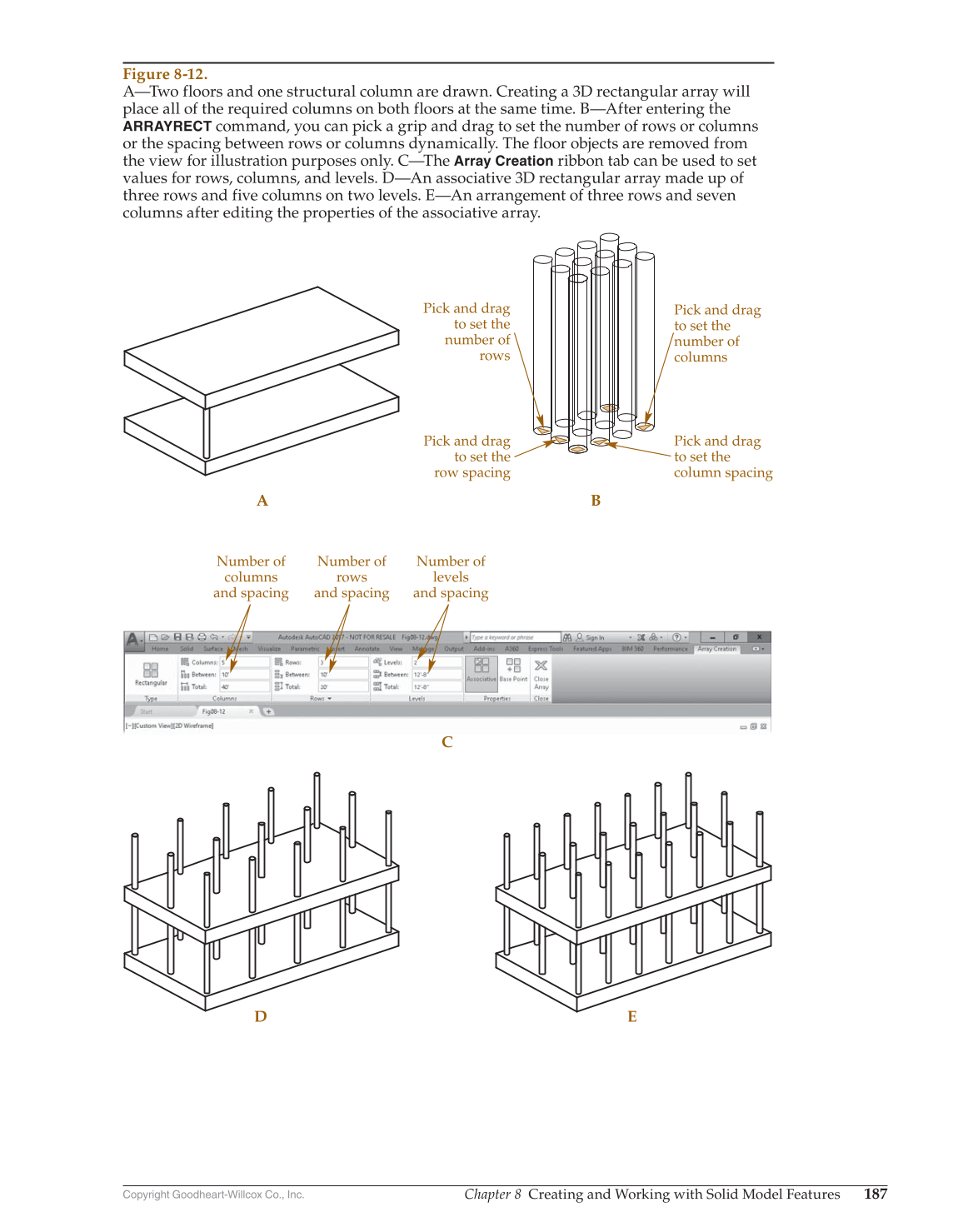 A—Two floors and one structural column are drawn. Creating a 3D rectangular array will