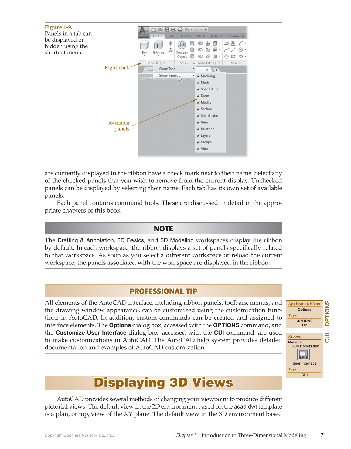 by default. In each workspace, the ribbon displays a set of panels specifi cally related