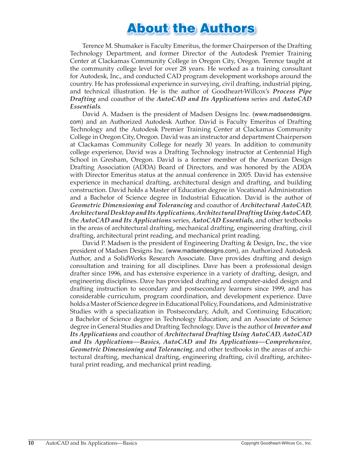 Drafting and coauthor of the AutoCAD and Its Applications series and AutoCAD