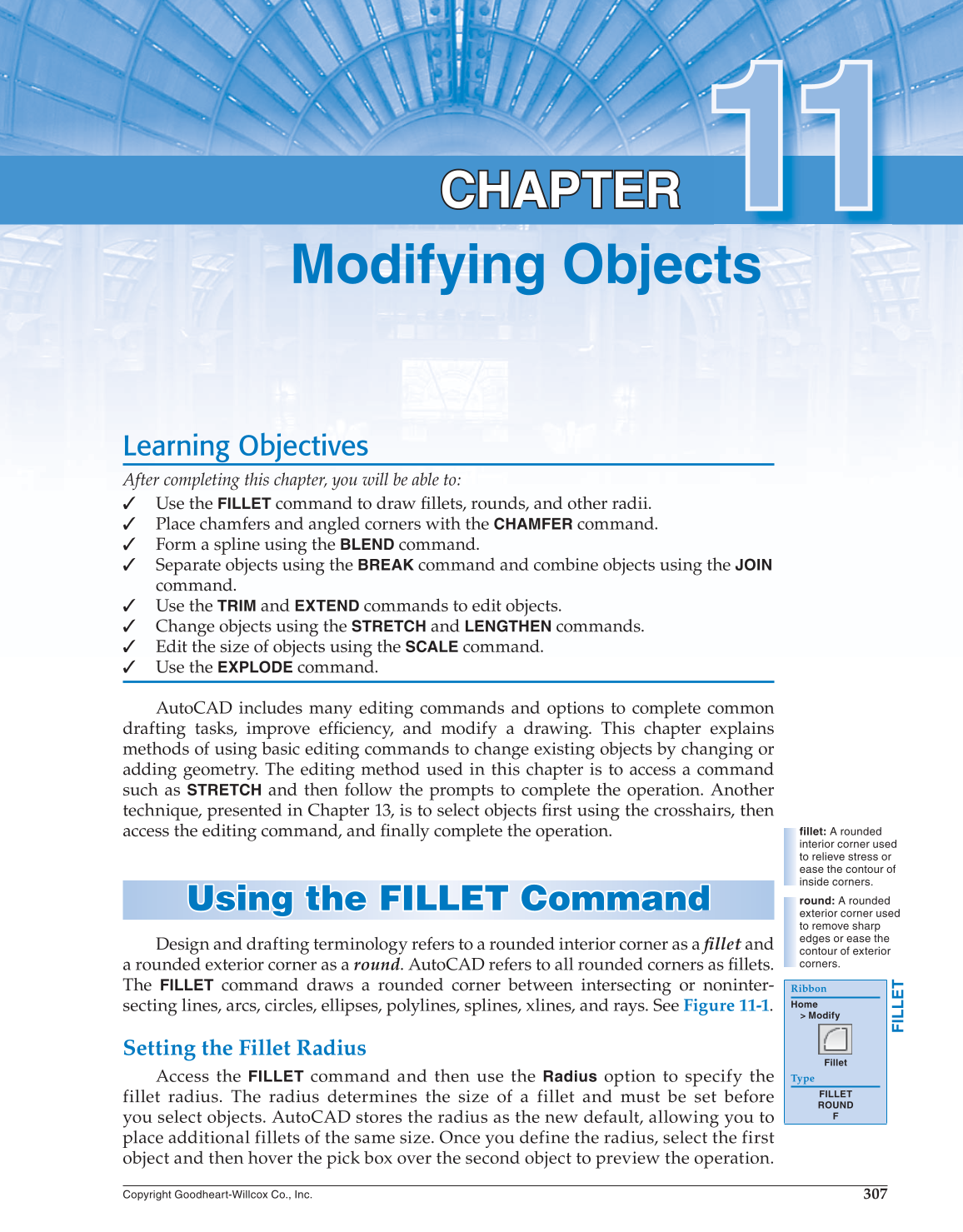 a rounded exterior corner as a round. AutoCAD refers to all rounded corners as fi llets.