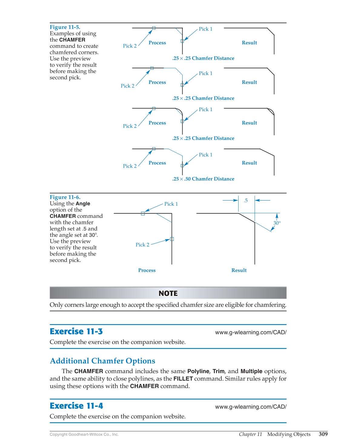 Only corners large enough to accept the specifi ed chamfer size are eligible for chamfering.