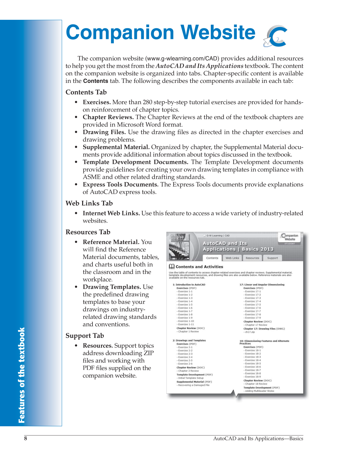 The companion website (www.g-wlearning.com/CAD) provides additional resources