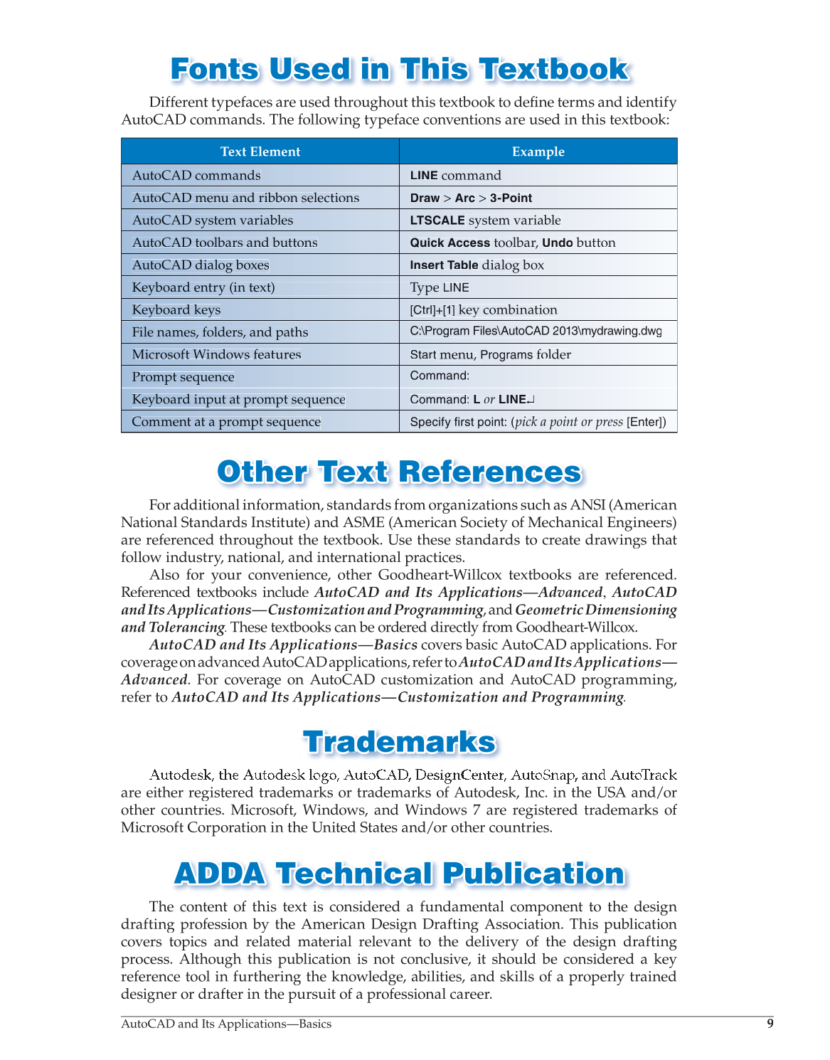 Referenced textbooks include AutoCAD and Its Applications—Advanced, AutoCAD