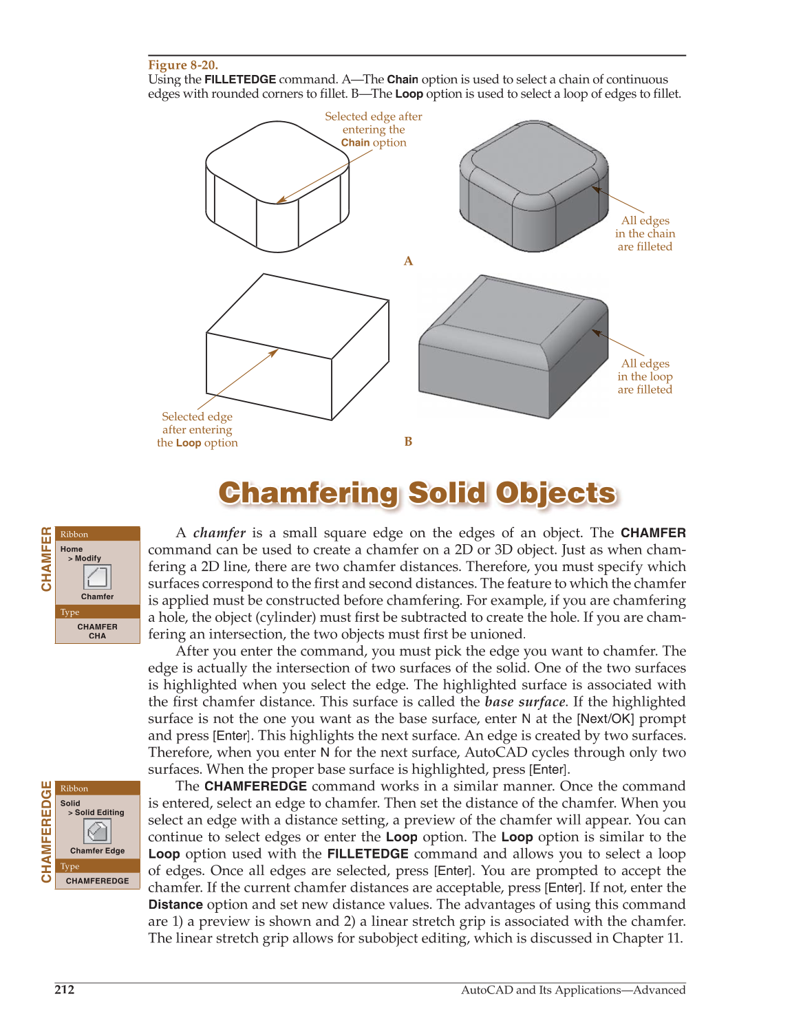 command can be used to create a chamfer on a 2D or 3D object. Just as when cham-