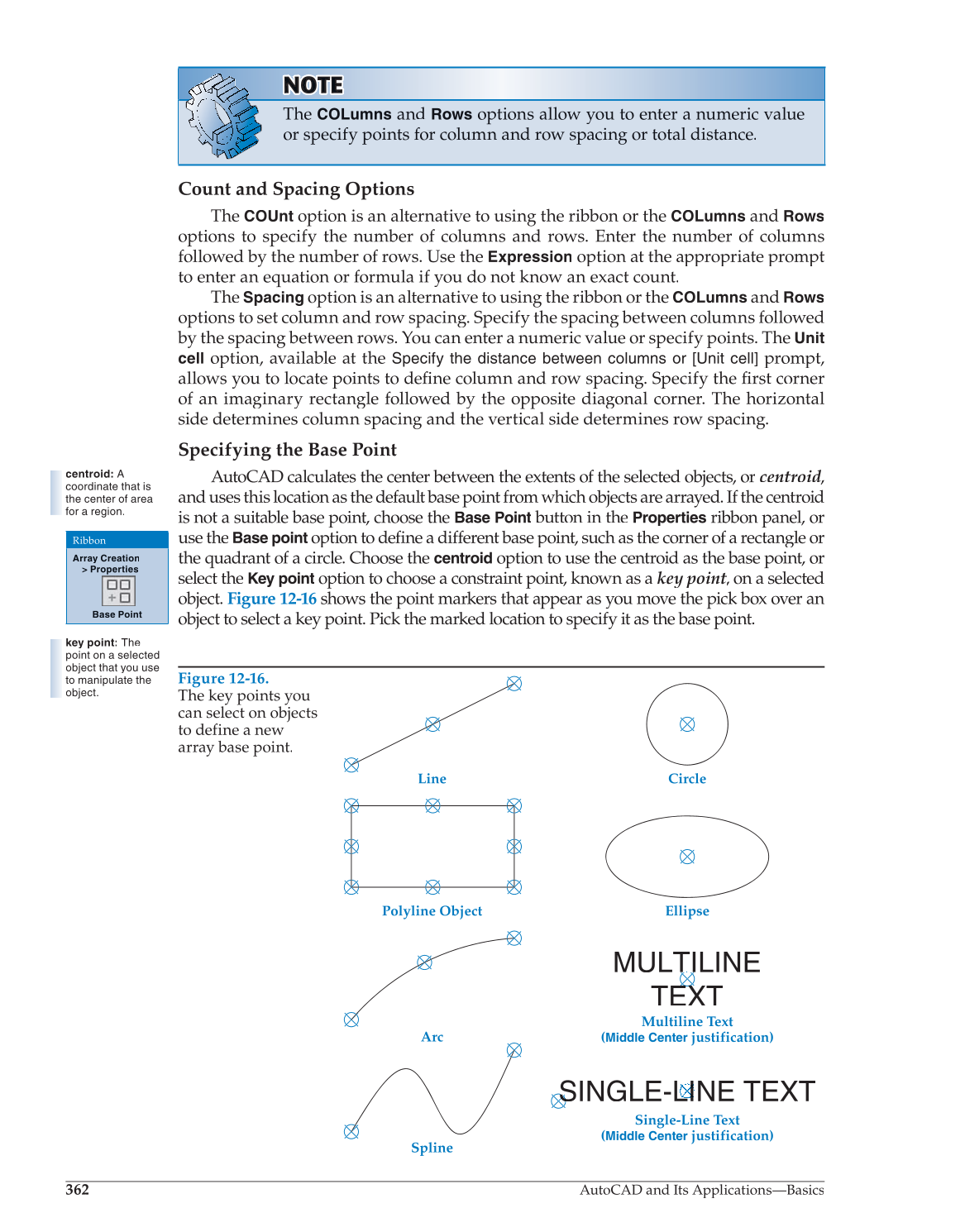 and uses this location as the default base point from which objects are arrayed. If the centroid