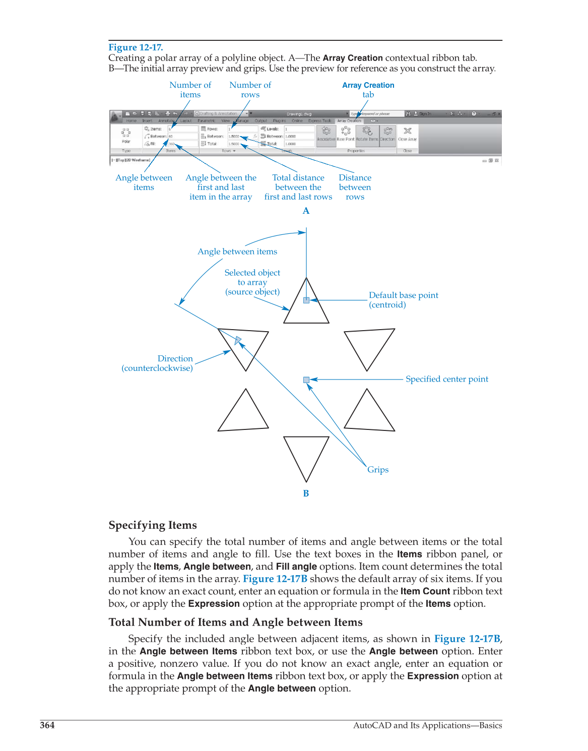 Specify the included angle between adjacent items, as shown in Figure 12-17B,
