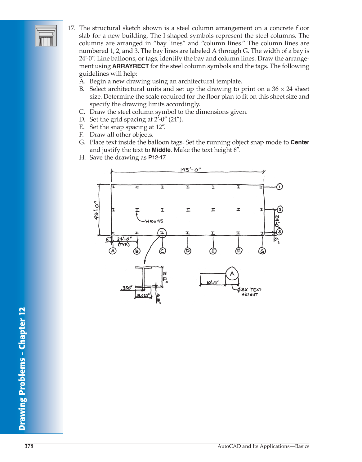 24′-0″. ′ Line balloons, or tags, identify the bay and column lines. Draw the arrange- ″