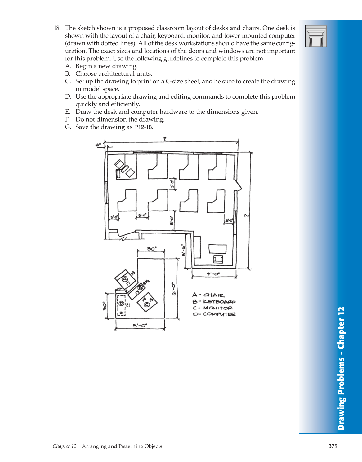 18. The sketch shown is a proposed classroom layout of desks and chairs. One desk is
