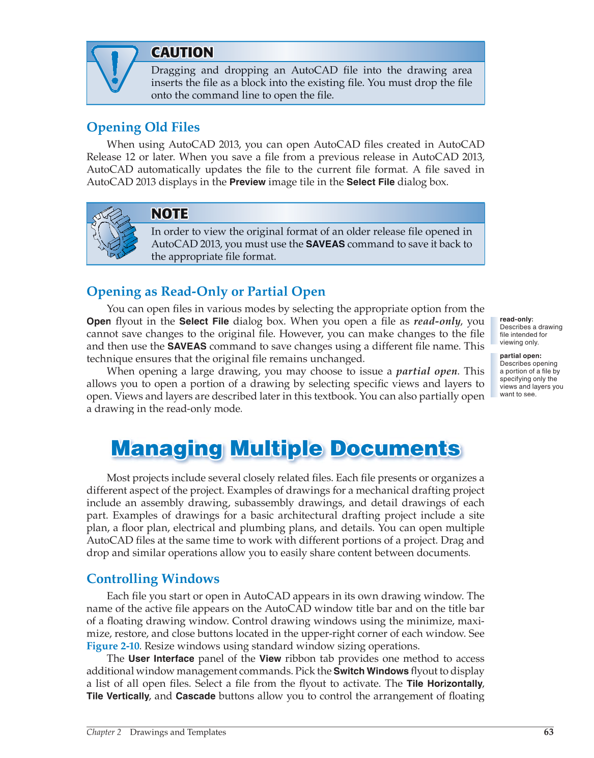 AutoCAD files at the same time to work with different portions of a project. Drag and fi