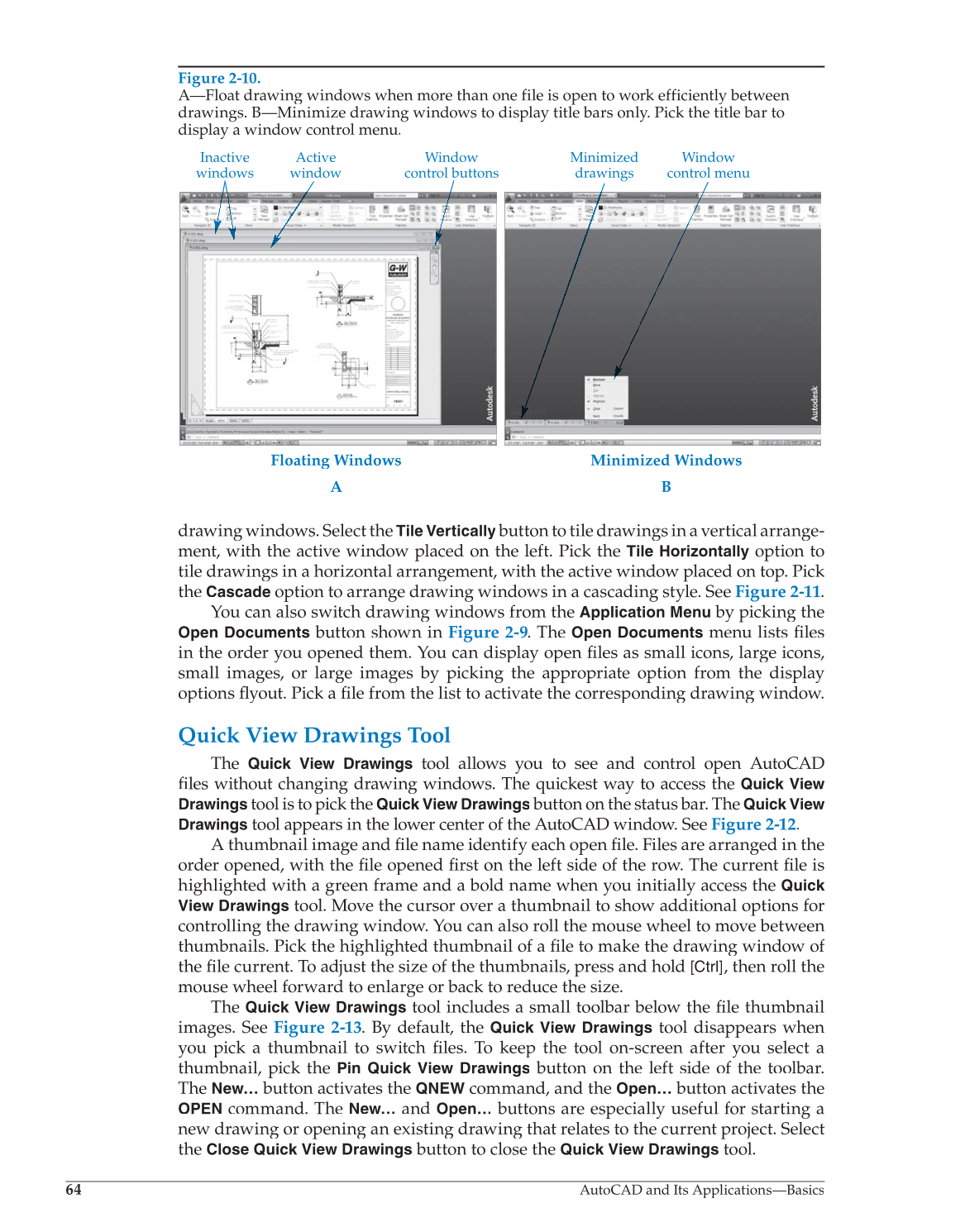 drawings. B—Minimize drawing windows to display title bars only. Pick the title bar to