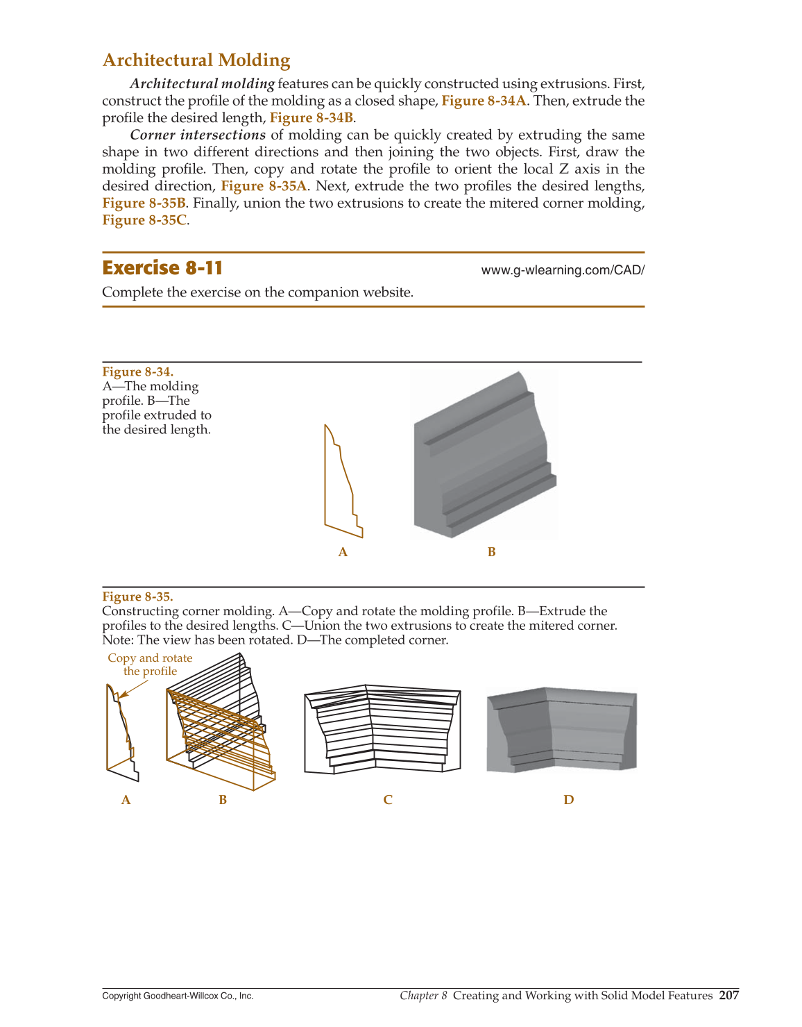 construct the profi le of the molding as a closed shape, Figure 8-34A. Then, extrude the