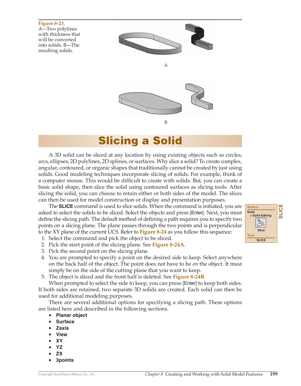 arcs, ellipses, 2D polylines, 2D splines, or surfaces. Why slice a solid? To create complex,