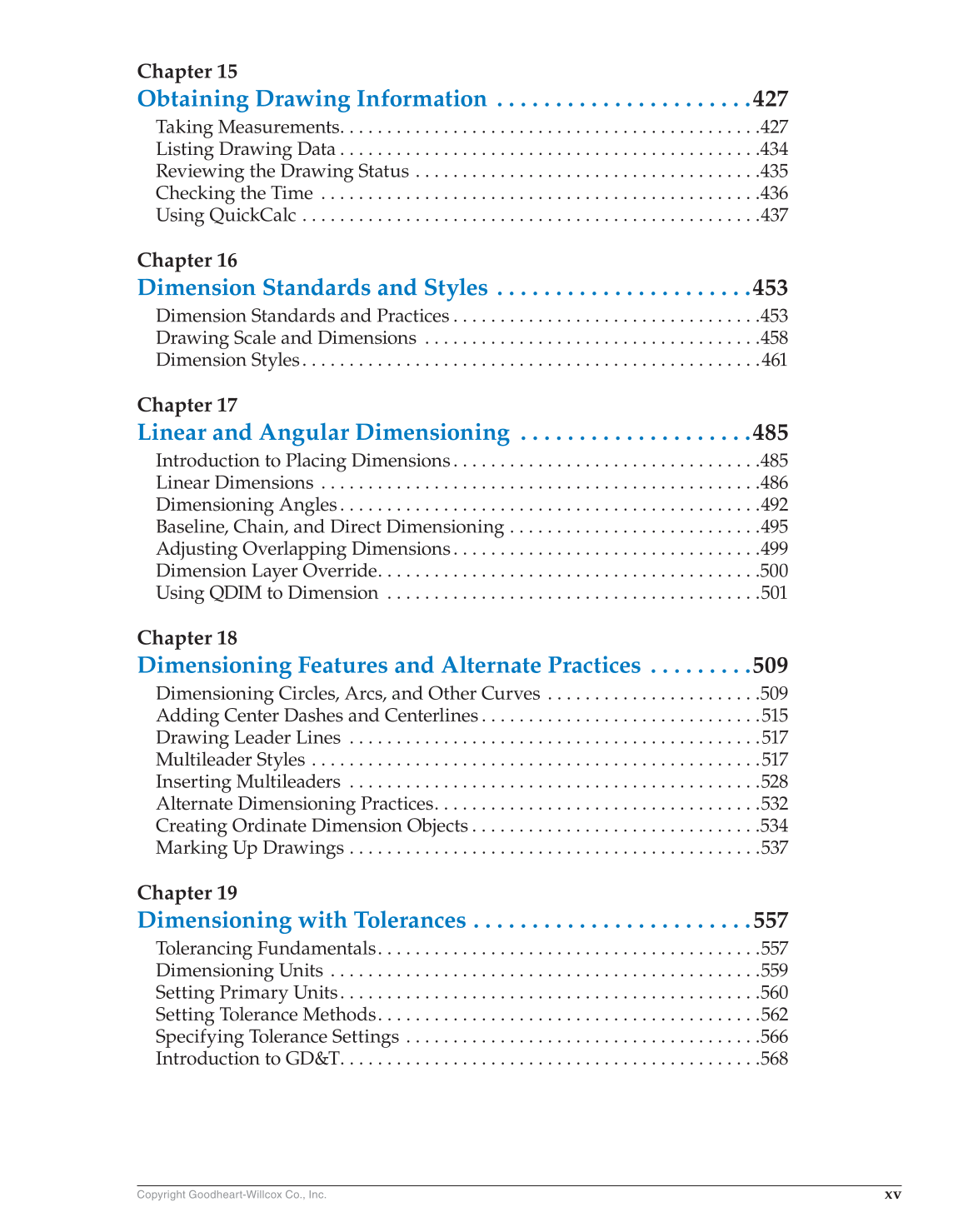 Dimensioning Circles, Arcs, and Other Curves . . . . . . . . . . . . . . . . . . . . . . .509