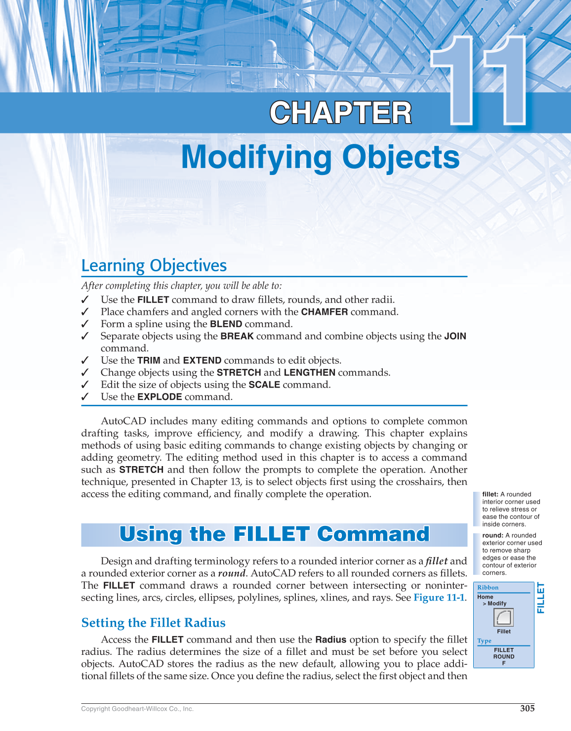 a rounded exterior corner as a round. AutoCAD refers to all rounded corners as fi llets.