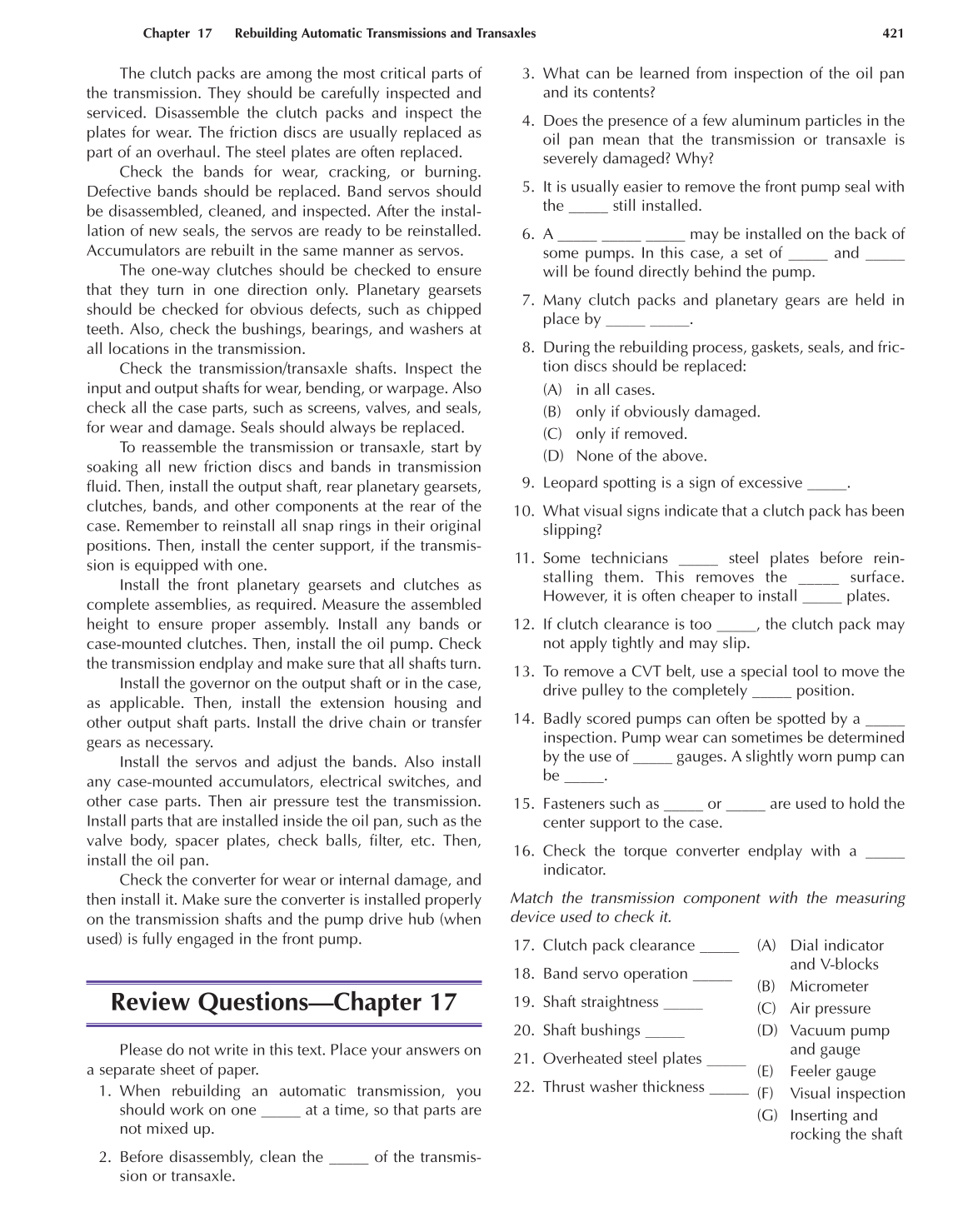 Chapter 17 Rebuilding Automatic Transmissions and Transaxles 421
