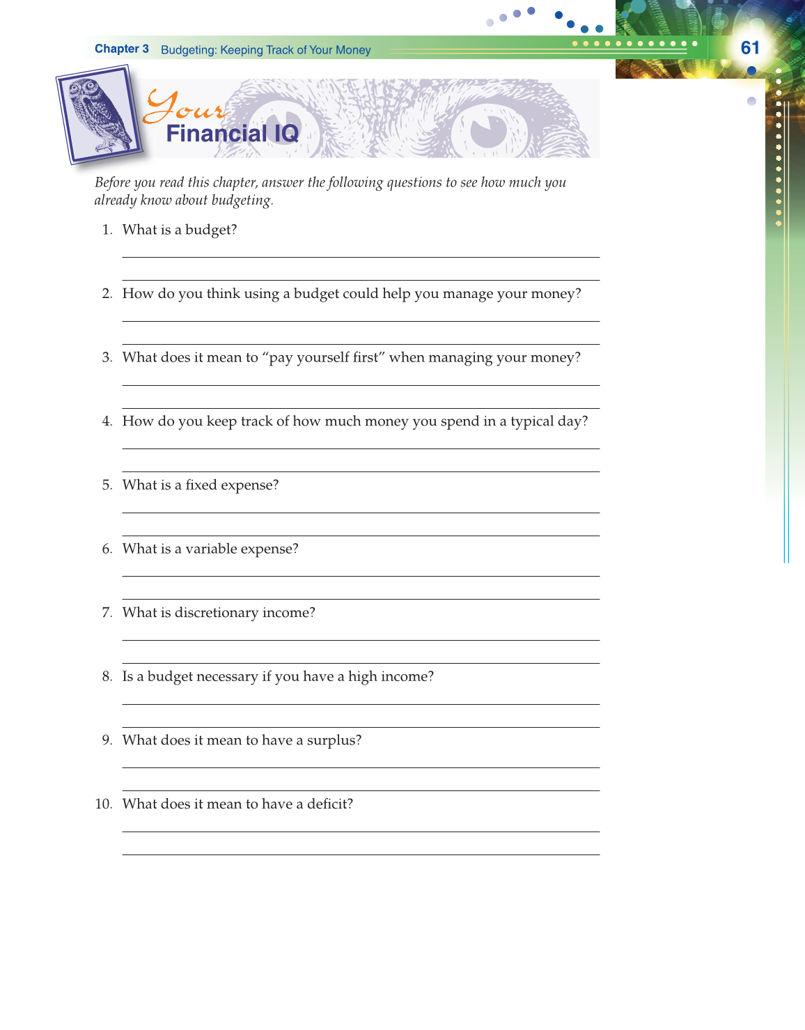 Before you read this chapter, answer the following questions to see how much you