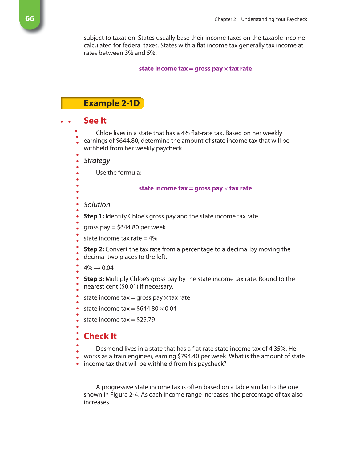 Step 3: Multiply Chloe’s gross pay by the state income tax rate. Round to the