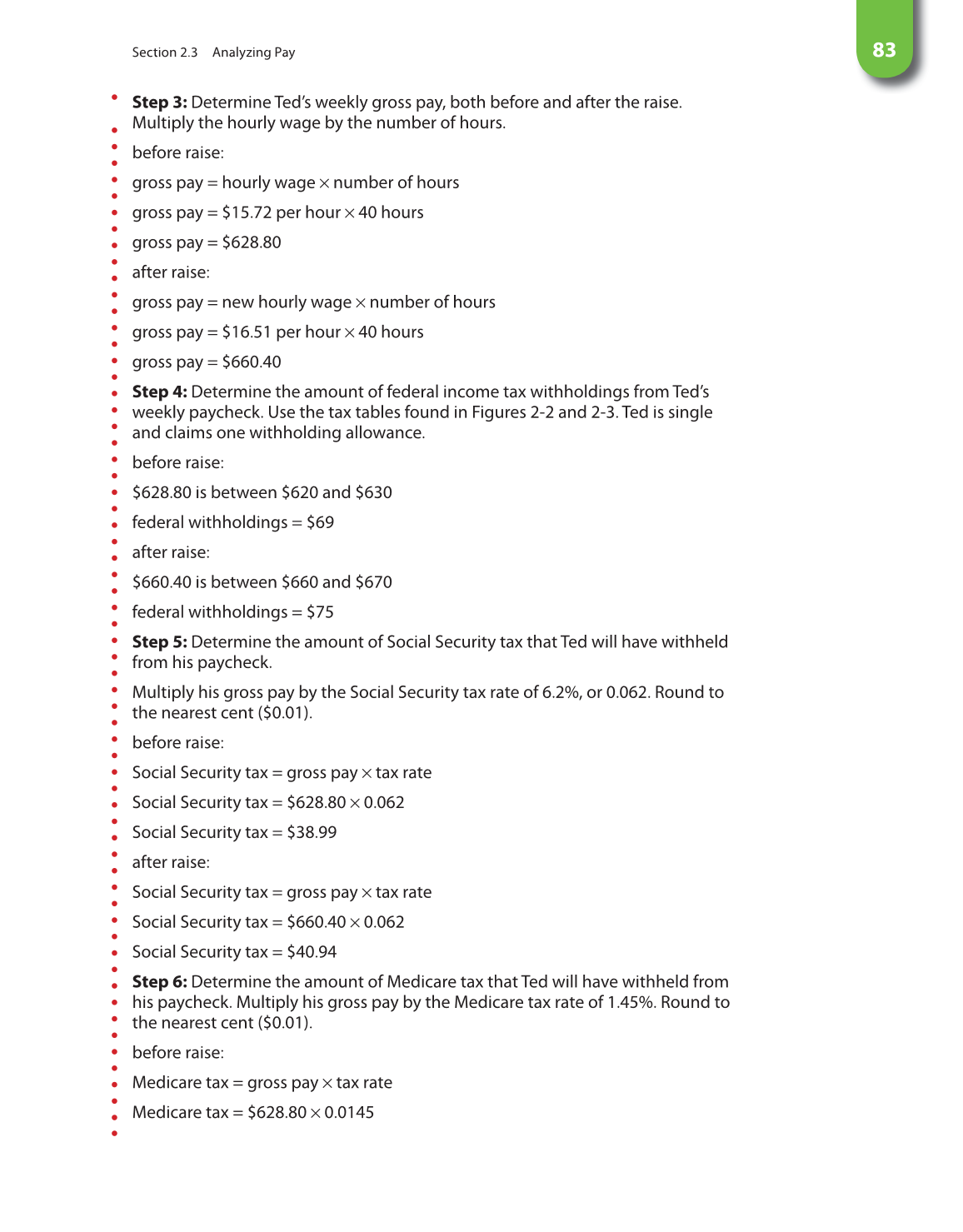 Step 3: Determine Ted’s weekly gross pay, both before and after the raise.