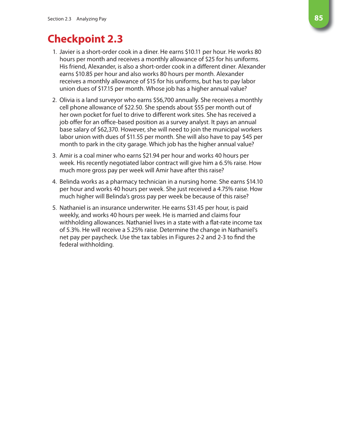 Section 2.3 Analyzing Pay