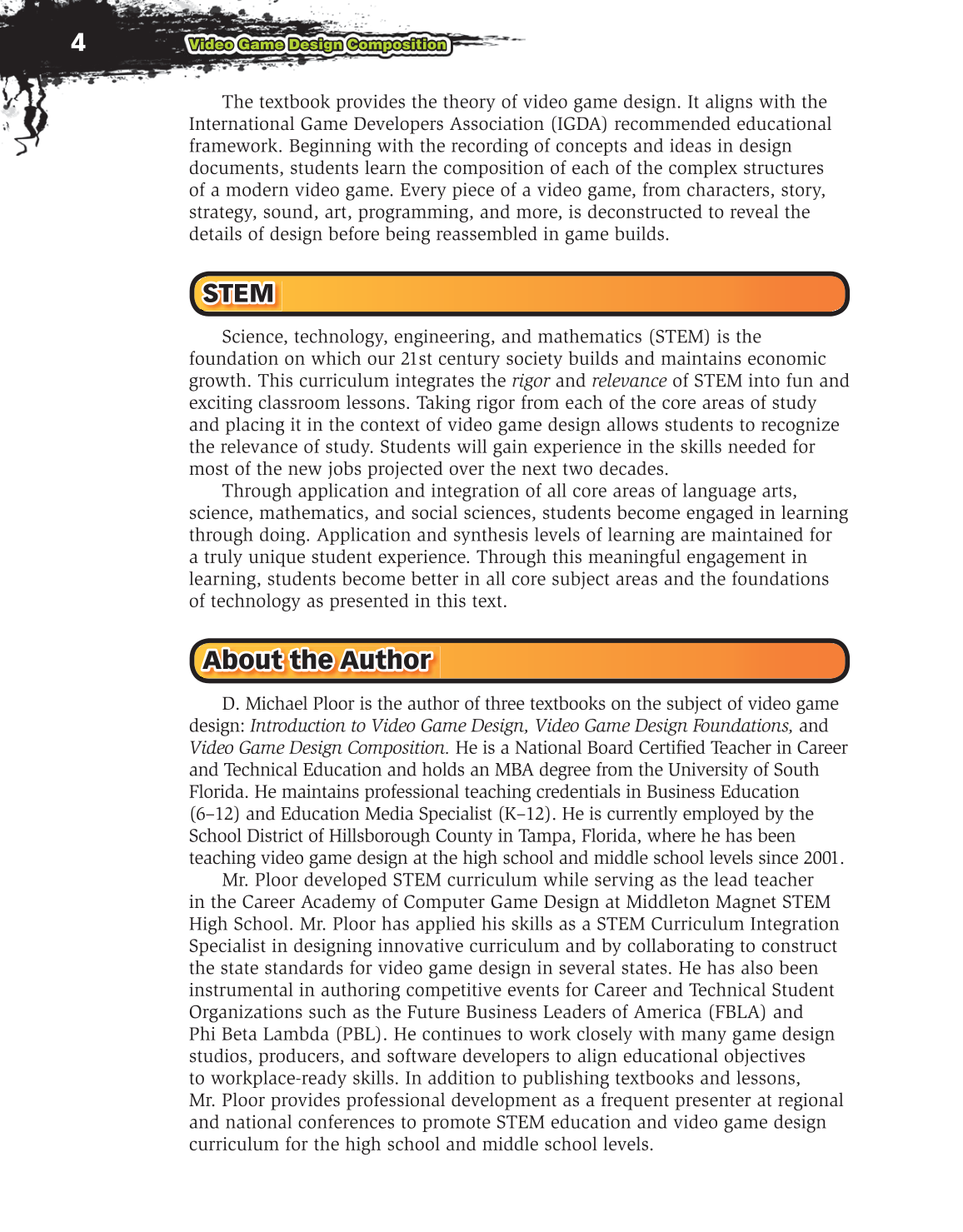 D. Michael Ploor is the author of three textbooks on the subject of video game