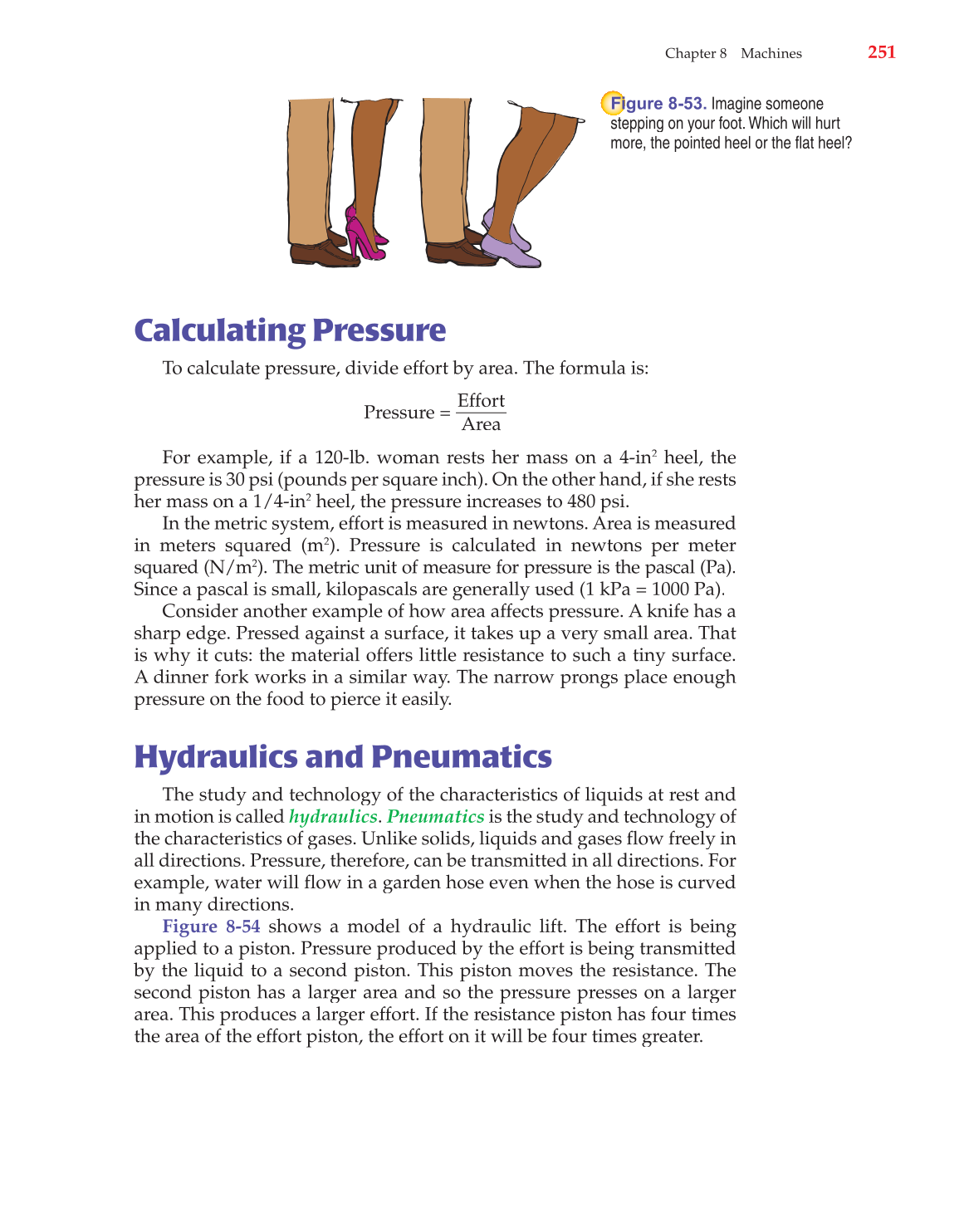 her mass on a 1/4-in2 heel, the pressure increases to 480 psi.