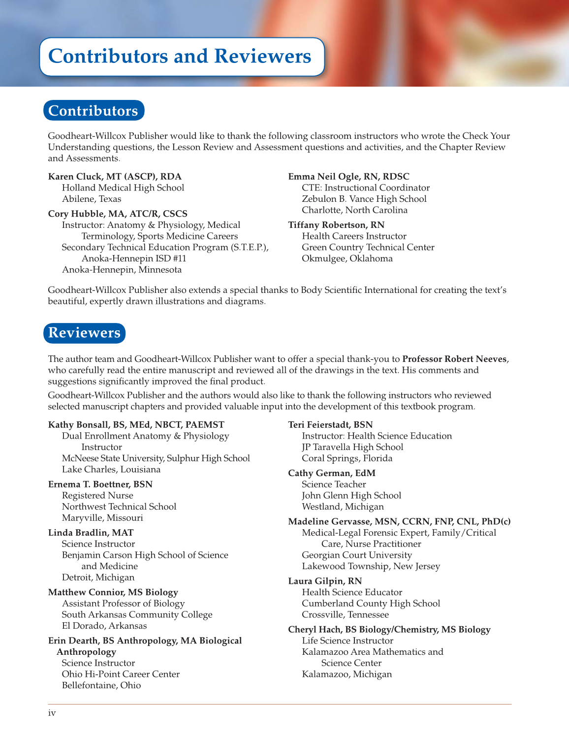 Goodheart-Willcox Publisher also extends a special thanks to Body Scientifi c International for creating the text’s