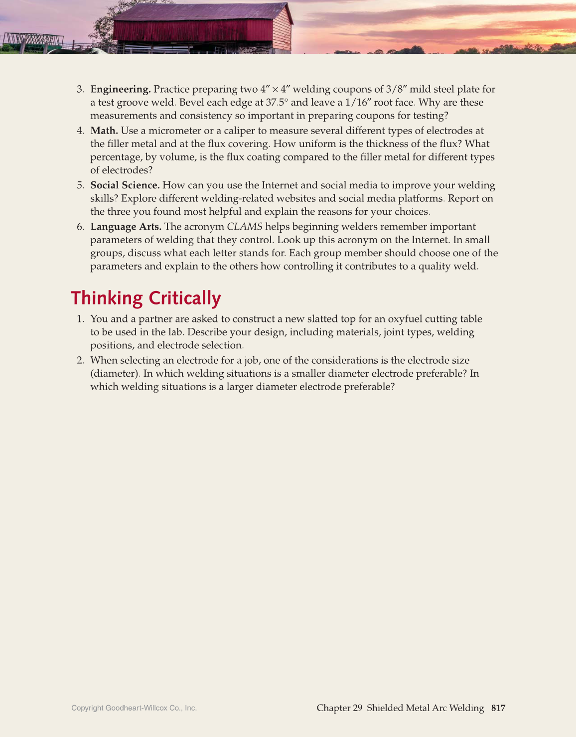 6. Language Arts. The acronym CLAMS helps beginning welders remember important