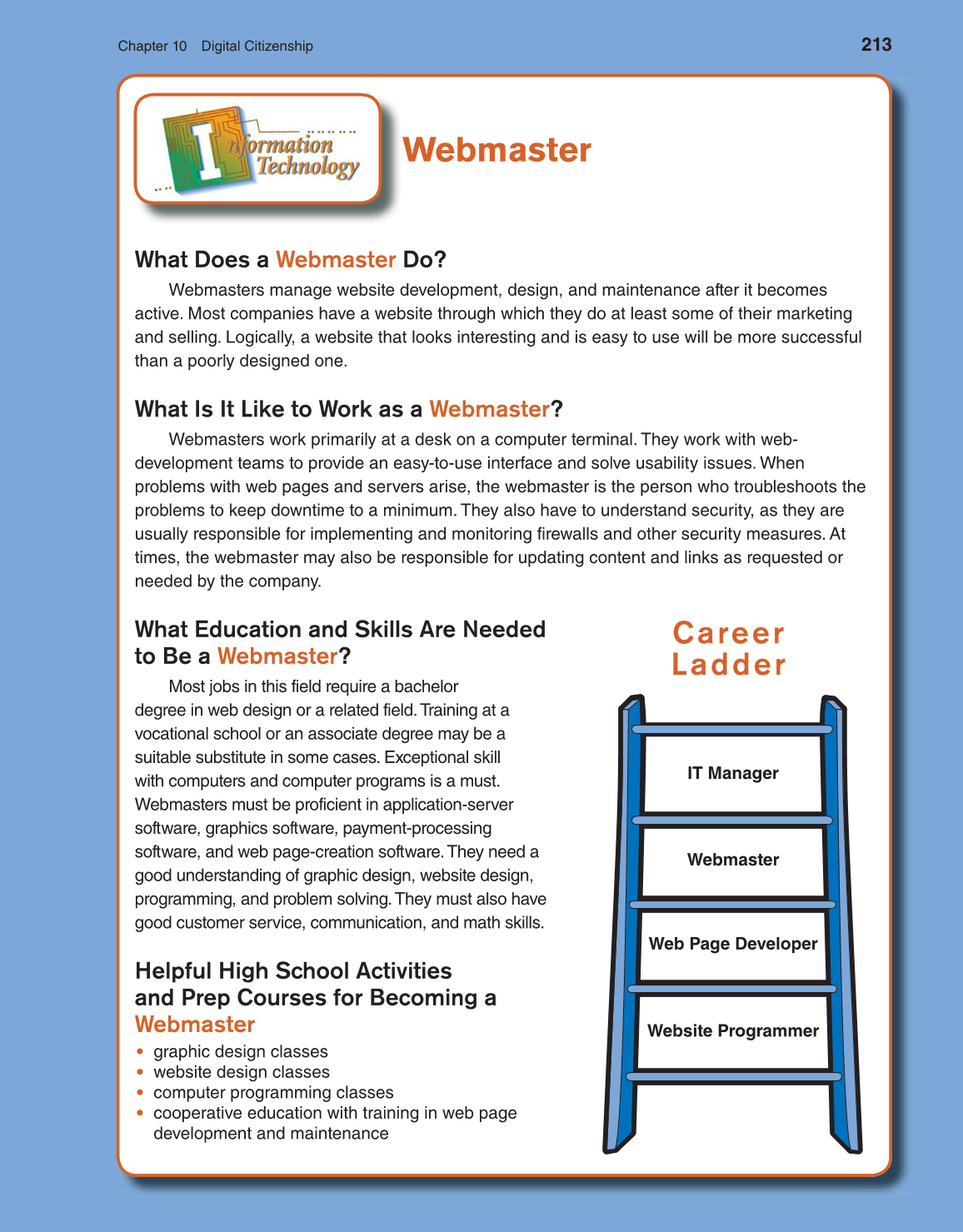 problems with web pages and servers arise, the webmaster is the person who troubleshoots the