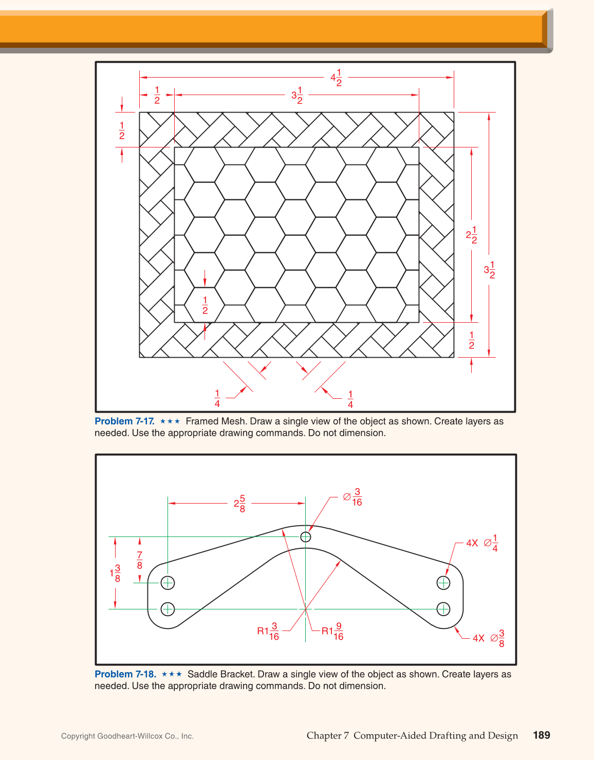 Problem 7-18. Saddle Bracket. Draw a single view of the object as shown. Create layers as