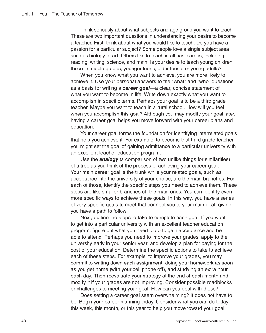 accomplish in specific terms. Perhaps your goal is to be a third grade