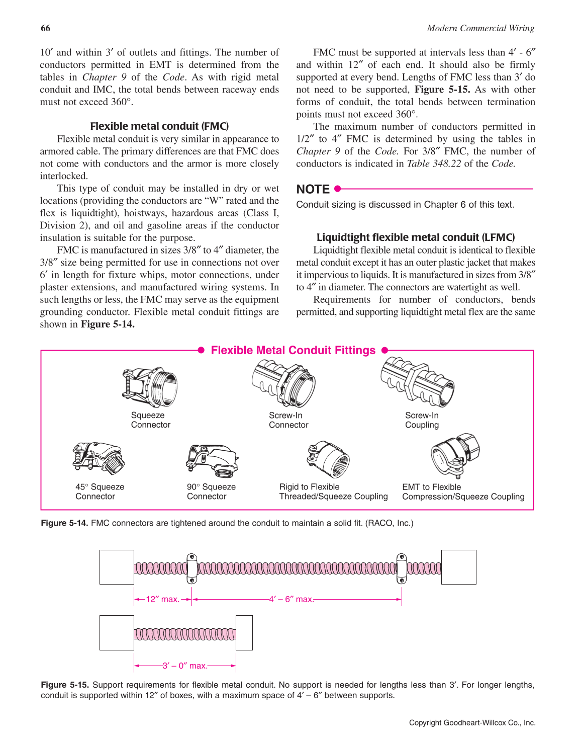 Figure 5-15. Support requirements for flexible metal conduit. No support is needed for lengths less than 3′. For longer lengths,