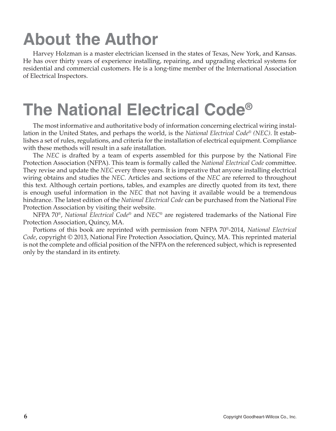 Portions of this book are reprinted with permission from NFPA 70®-2014, National Electrical