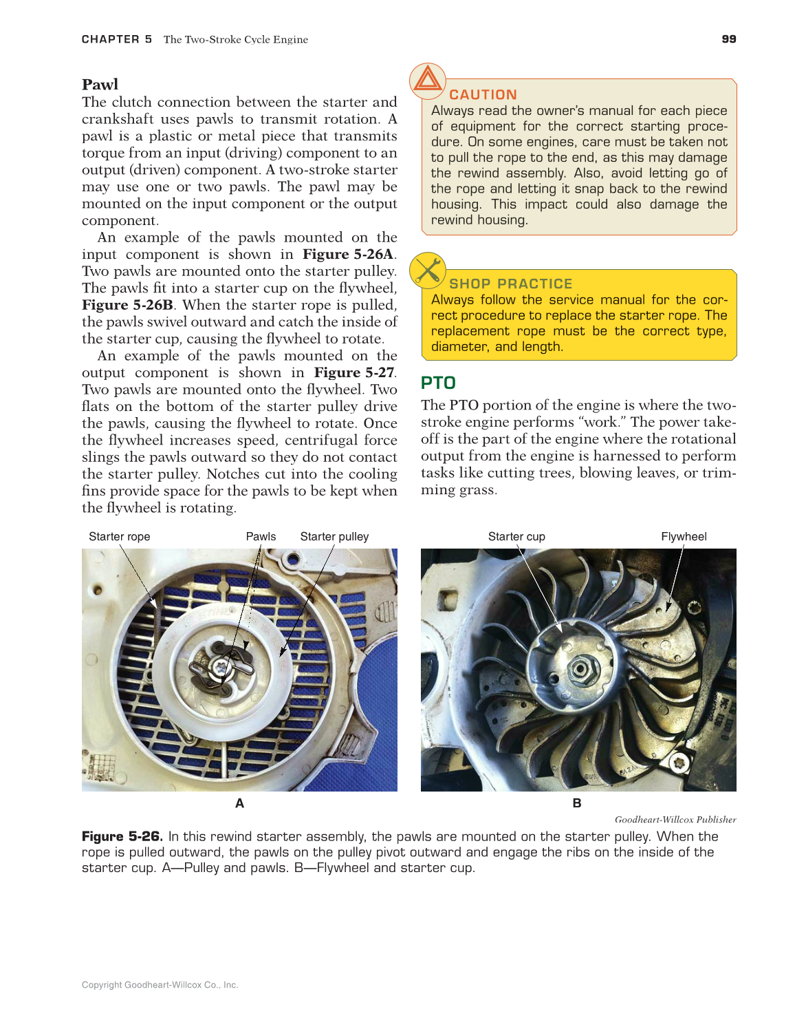 Figure 5-26. In this rewind starter assembly, the pawls are mounted on the starter pulley. When the