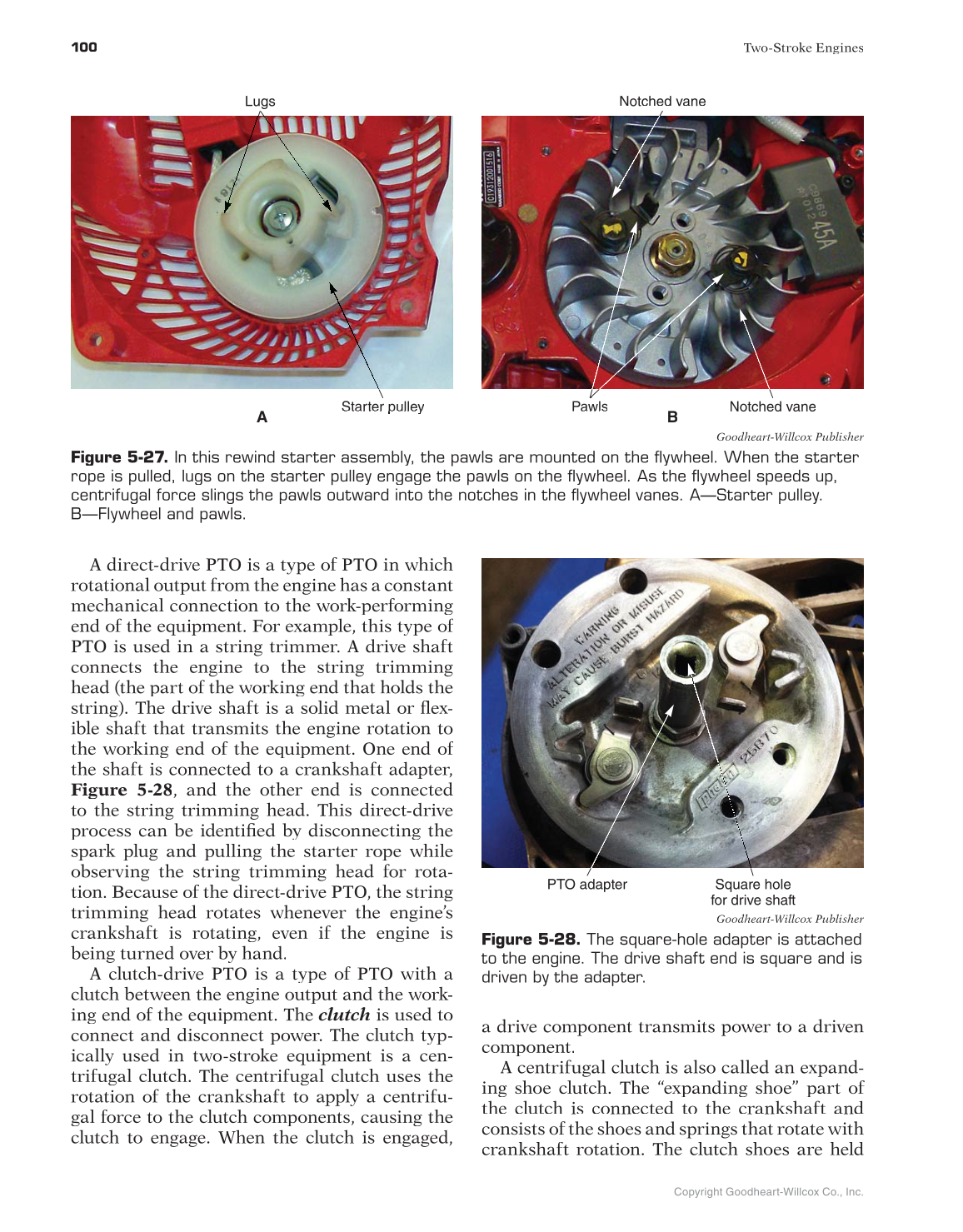 Figure 5-27. In this rewind starter assembly, the pawls are mounted on the flywheel. When the starter