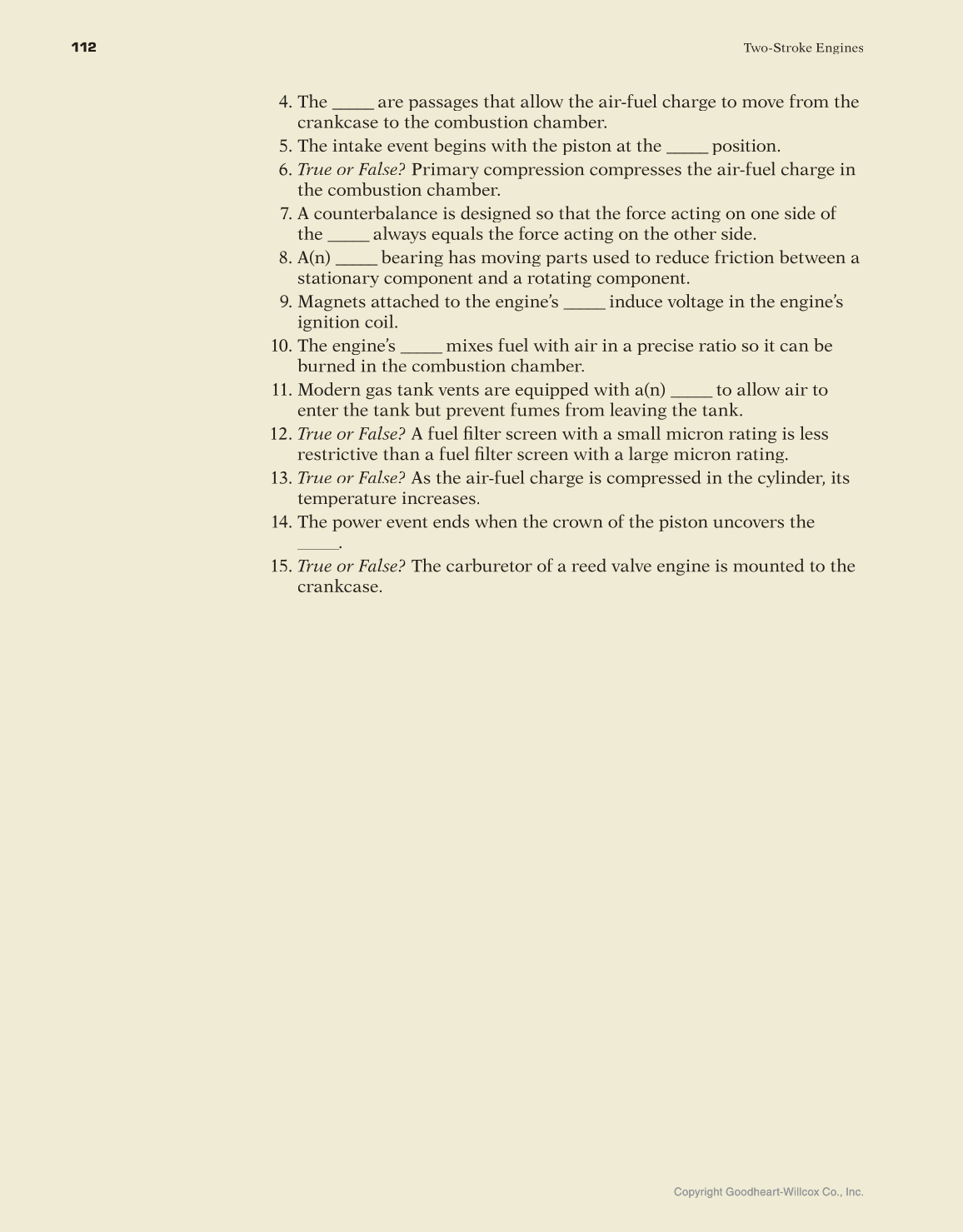 6. True or False? Primary compression compresses the air-fuel charge in