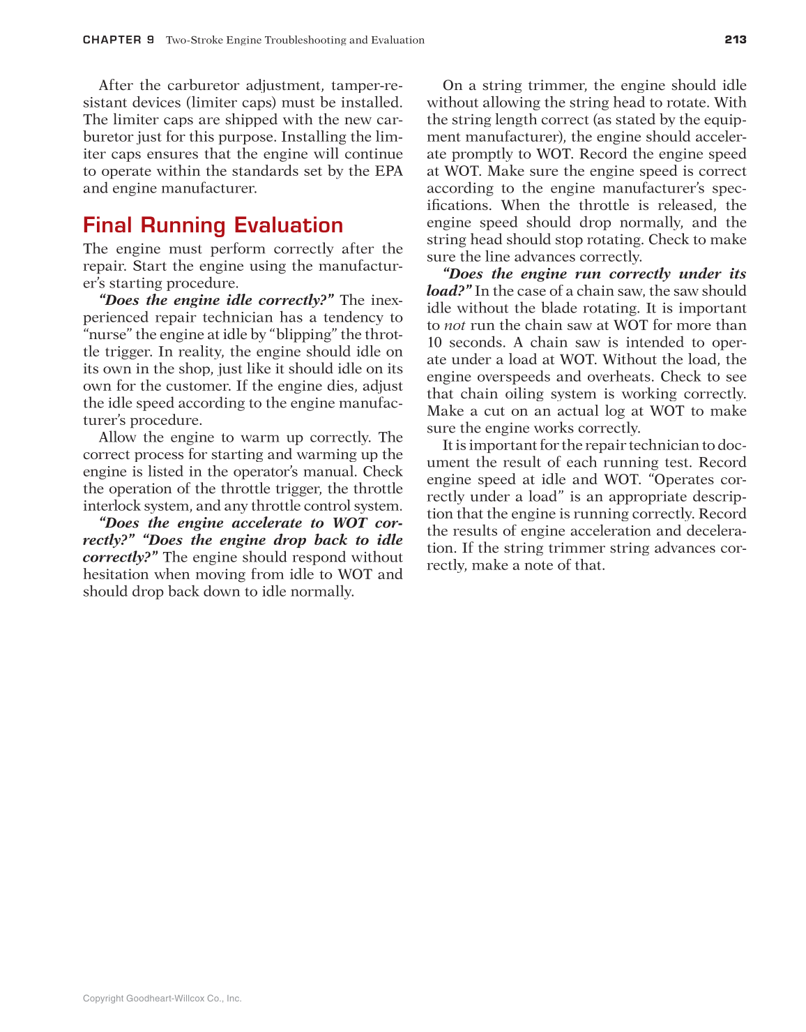CHAPTER 9 Two-Stroke Engine Troubleshooting and Evaluation