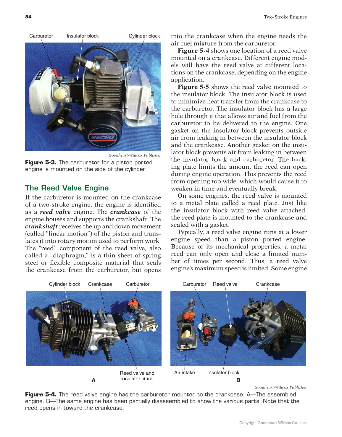 Figure 5-4. The reed valve engine has the carburetor mounted to the crankcase. A—The assembled